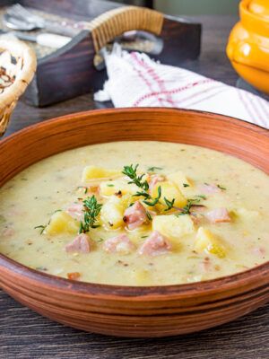 - Mustard. Wholegrain mustard is essential here. It adds a gentle pungency and a pleasant pop of texture that cuts through the creaminess of the soup.