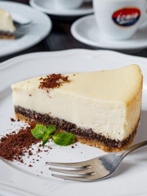 Before serving, run a knife around the inside of the pan to loosen the cheesecake, remove the rim, and transfer it to a serving plate.